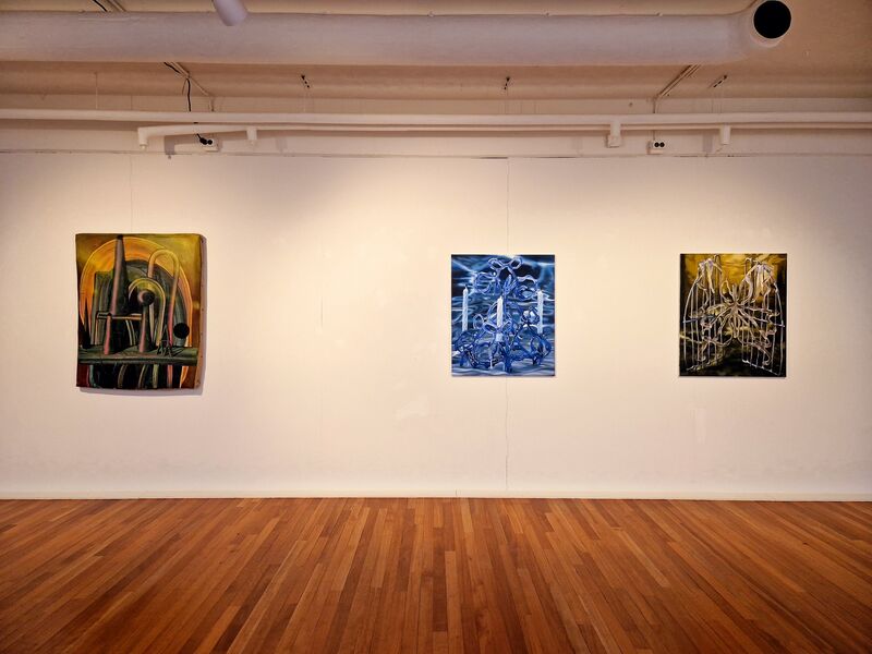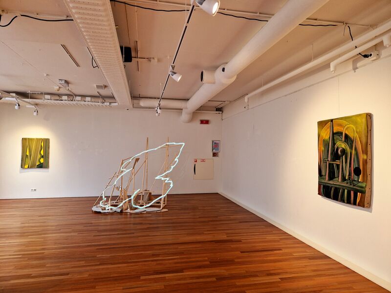 Sander van Deurzen (1975) werkt met uitgesproken kleuren en duidelijke vegen van zijn hand. Door verschillende elementen en lagen in het beeld te zetten suggereert hij diepte, maar hoe diep is de ruimte eigenlijk? Dat is vaak afhankelijk van wat we op het doek zien, dat kan een stilleven zijn maar ook een doorkijk naar een landschap. Soms wordt je heen en weer gestuurd tussen de lagen die met vlotte en energieke bewegingen gemaakt zijn. Zijn recente schilderijen kenmerken zich door organische vormen en in elkaar overvloeiende kleuren, vastgelegd in een vluchtig moment. Het werk roept associaties op met diverse (organische) materialen. Uiteindelijk blijft een duiding van wat ze zijn achterwege. Beweging en tot stilstand gebrachte vergankelijkheid spelen een centrale rol in zijn werk. Hij balanceert deze zware thematiek met typerende luchtig handschrift in bewegelijke banen verf. Dat krijgt ook vorm door de beweging in de verbogen en verzachte schilderframes voort te zetten. Schilderijen nemen daardoor soms ongebruikelijke vormen aan en lijken te ontsnappen aan het idee schilderij te zijn.