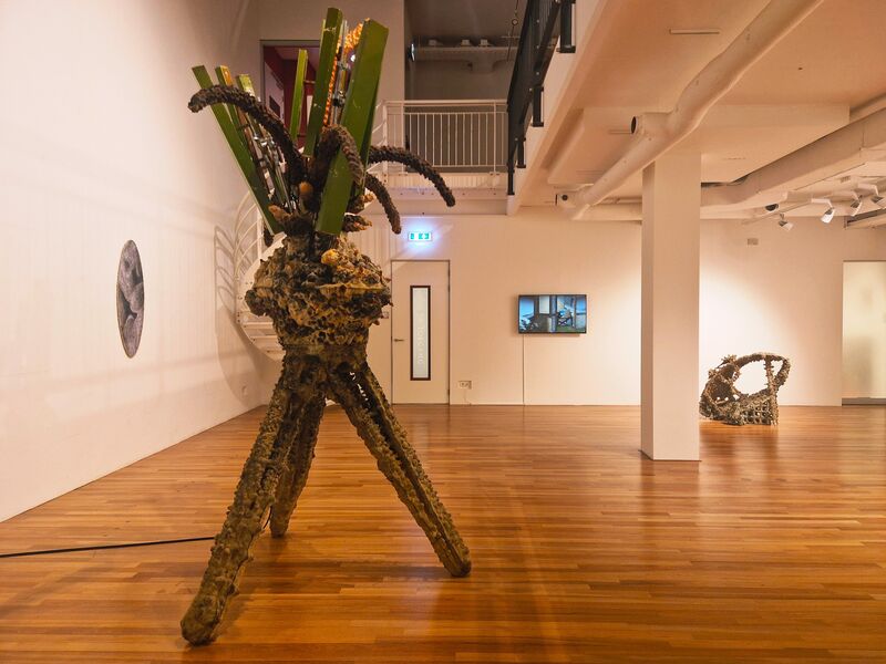 Kevin Bauer (1987) creëert toekomstige fossielen van onze beschaving – versteende cassettebandjes, afstandsbedieningen en andere technische apparaten – als herinnering aan het veeleisende Antropoceen. Welke sporen laten eeuwen van technologische ontdekkingen en hun vaak dramatische praktische toepassing na? Verval en ruïnes zijn de sporen van de tijd op menselijke ambities. Bauer bouwt voort op de spanning tussen de duur van een menselijk gebaar en de tijd van de (an)organische natuur. De sculptuur 384.000 km lijkt op een salontafel van een excentrieke miljardair of een maquette van een paviljoen van een archeologische vindplaats uit de toekomst. Memorism is een snel ingepakt noodpakket met een verraderlijk romantische toets.